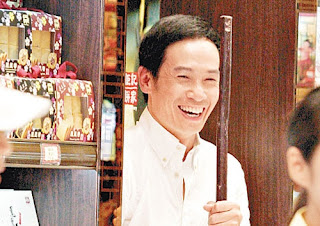 When there wasn’t a need to get in position for filming, Moses Chan returned back to within the shop to mingle and chit chat with everyone as well as to enjoy the air-conditioner. In the meantime, while the director was filming a close-up shot of KK, Moses took KK’s long wooden stick and played around with it.
